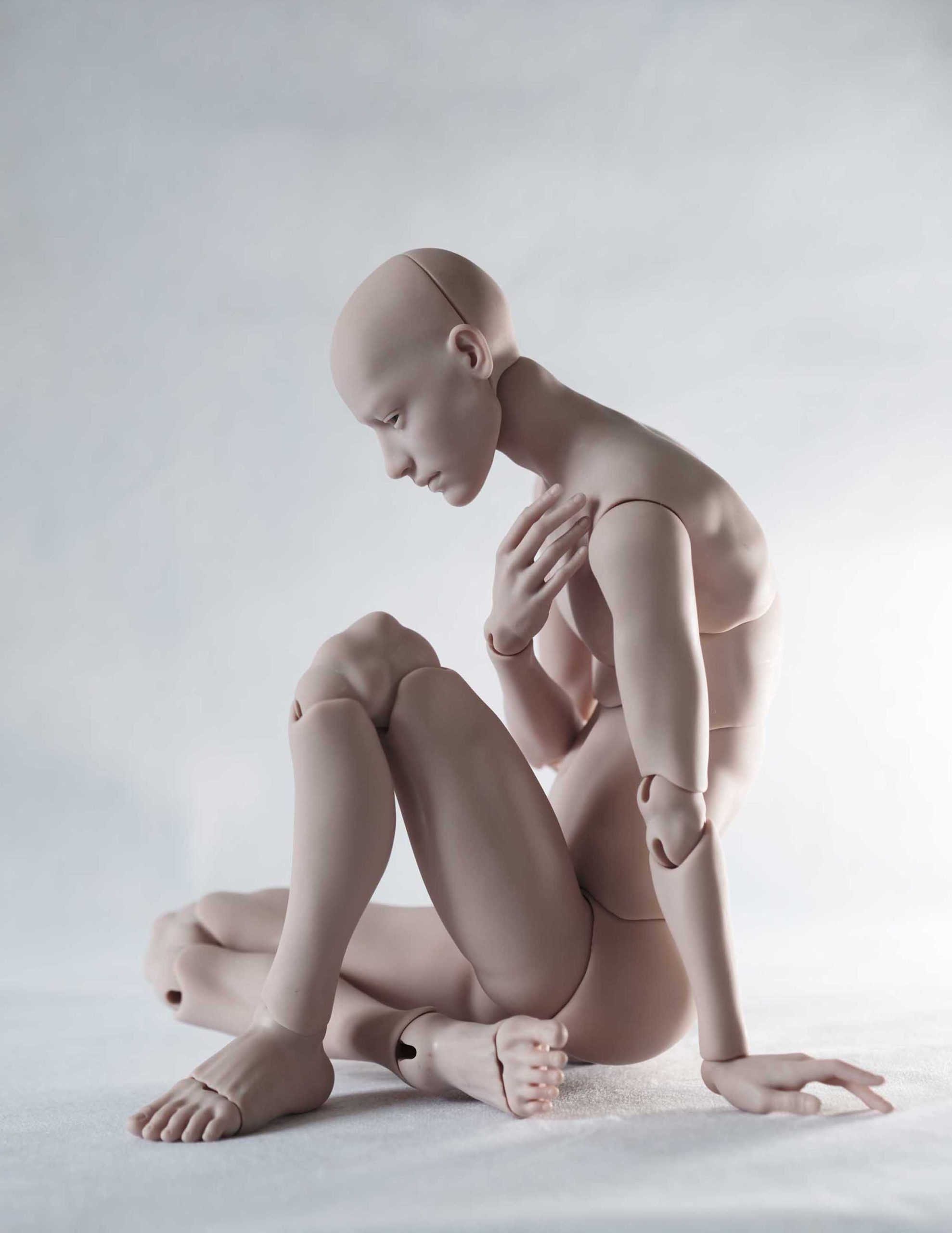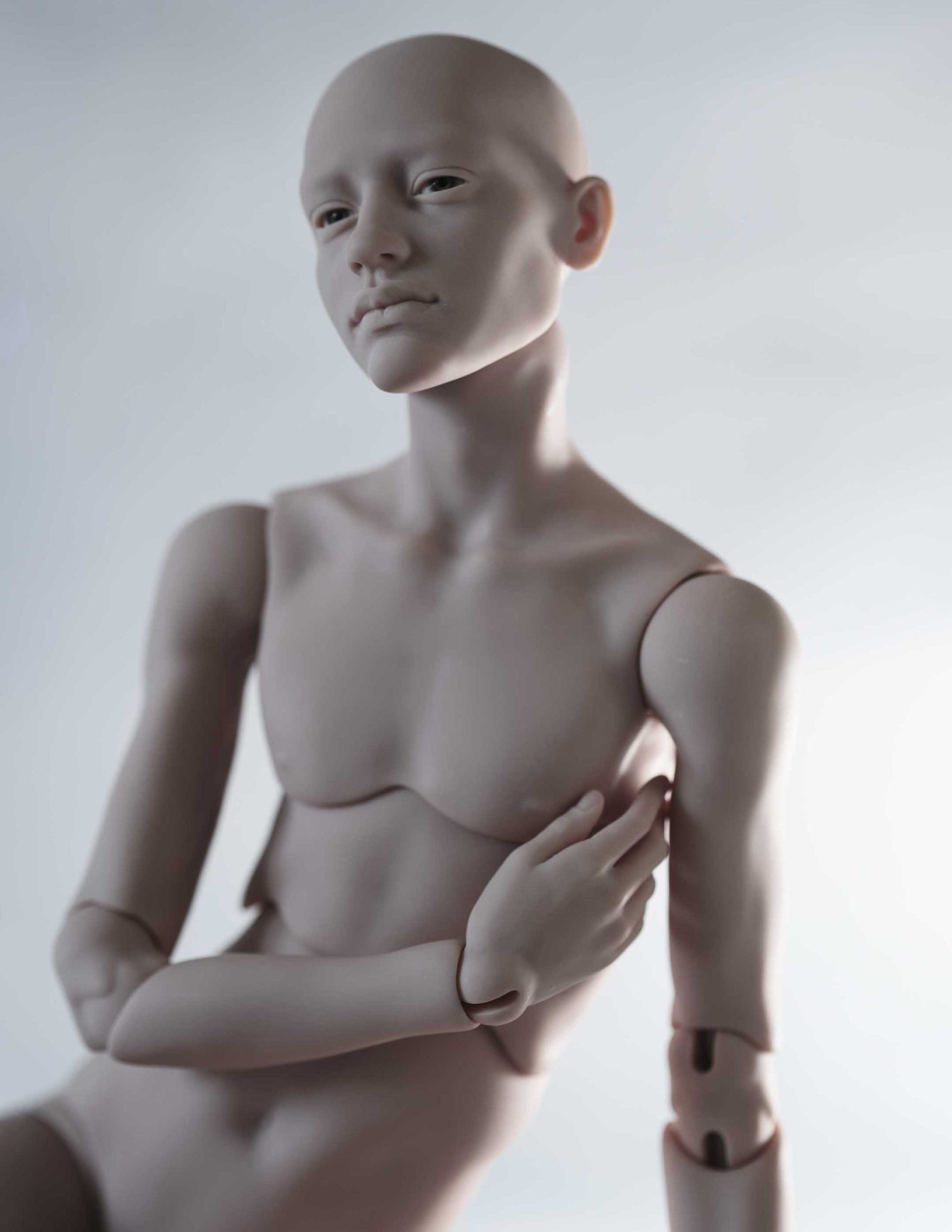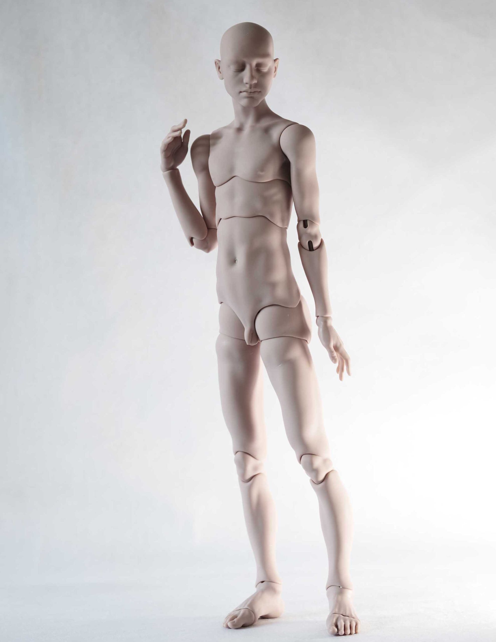 The boy now comes with an updated body: the shape, height, and overall design remain the same, but he is now equipped with hip joints that are simple to use, visually striking, and still quite discreet. He also has a new double joint in the chest, improved, more poseable elbows, and redesigned wrist joints. This makes him wonderfully responsive and easy to pose — even when fully dressed.