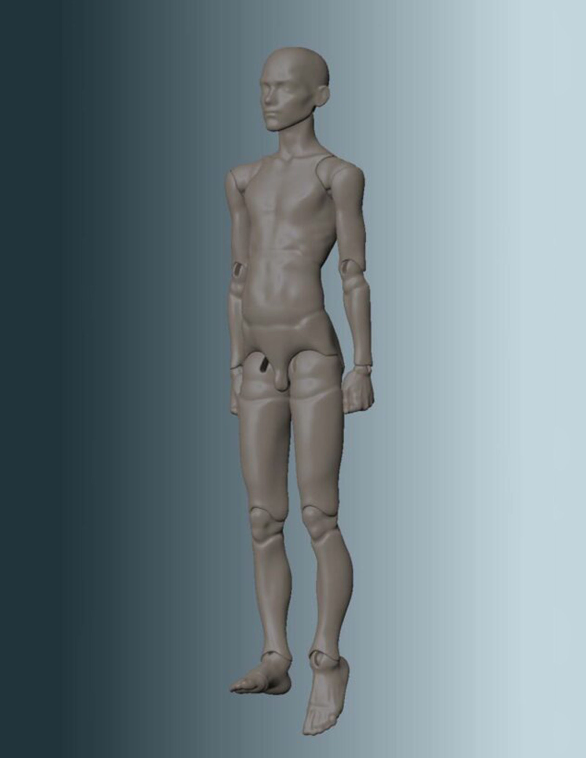 The mannequin contains removable head, 4 joints in arms and two joints in legs. Feet and hands can be fixed with hooks, or you can put rings on their place.